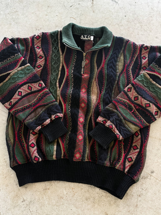 Vintage 1990s MultiColored 3D Knit Quarter Zip Mens Sweater ( Large )