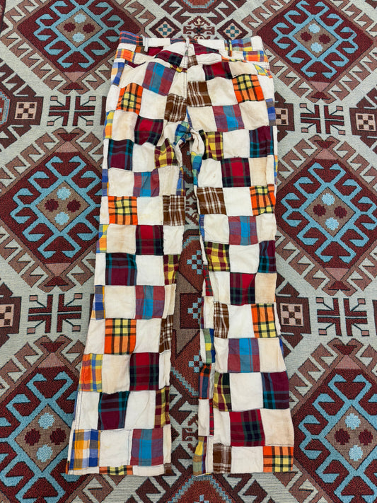 Vintage 7 0 s Talon Zip Patch Work Flare Unisex Pants (30x32)