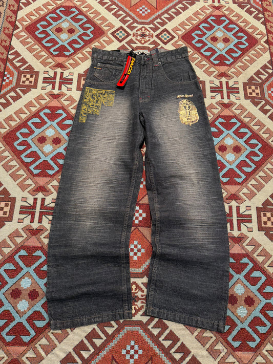 Vintage Y2K Paco Jeans Black Faded Embroidered Baggy Jeans (30x30)
