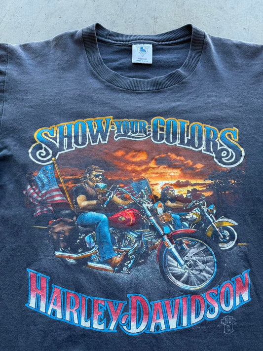 Vintage 1980s Show Your Colors Harley Davidson Tee ( Medium )
