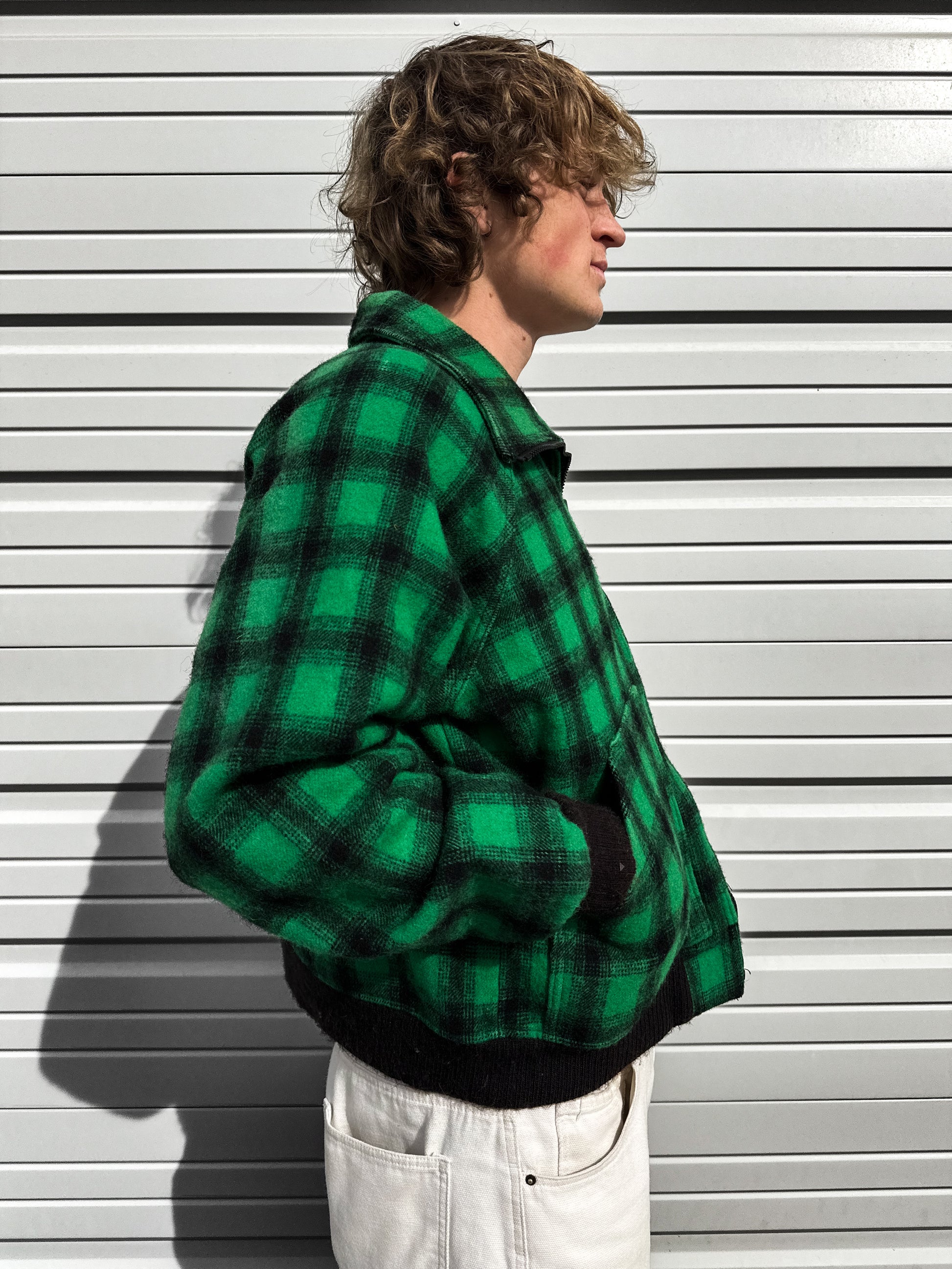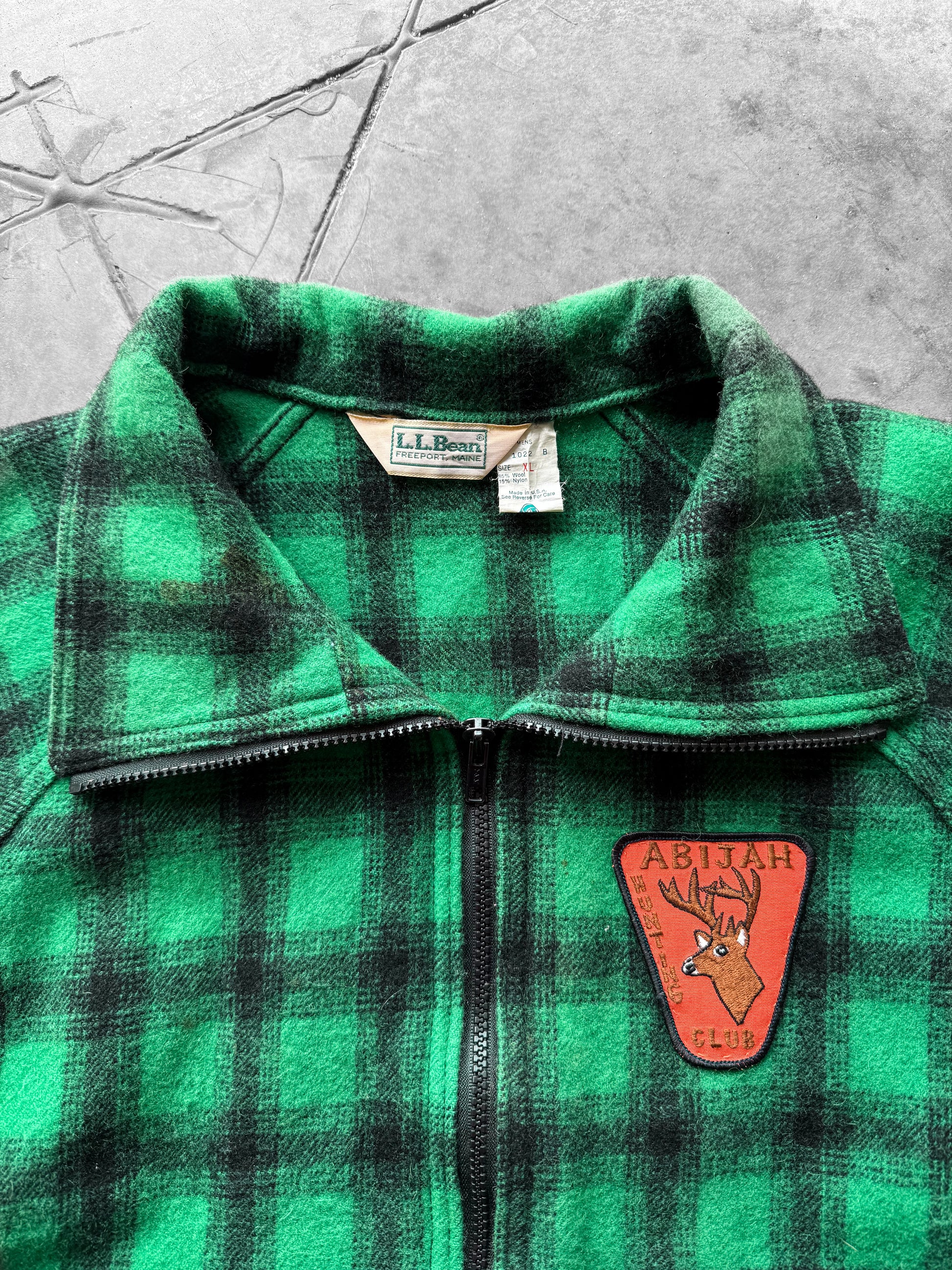 Rare Vintage 1980s LL Bean Wool Zip Up Green Plaid Jacket