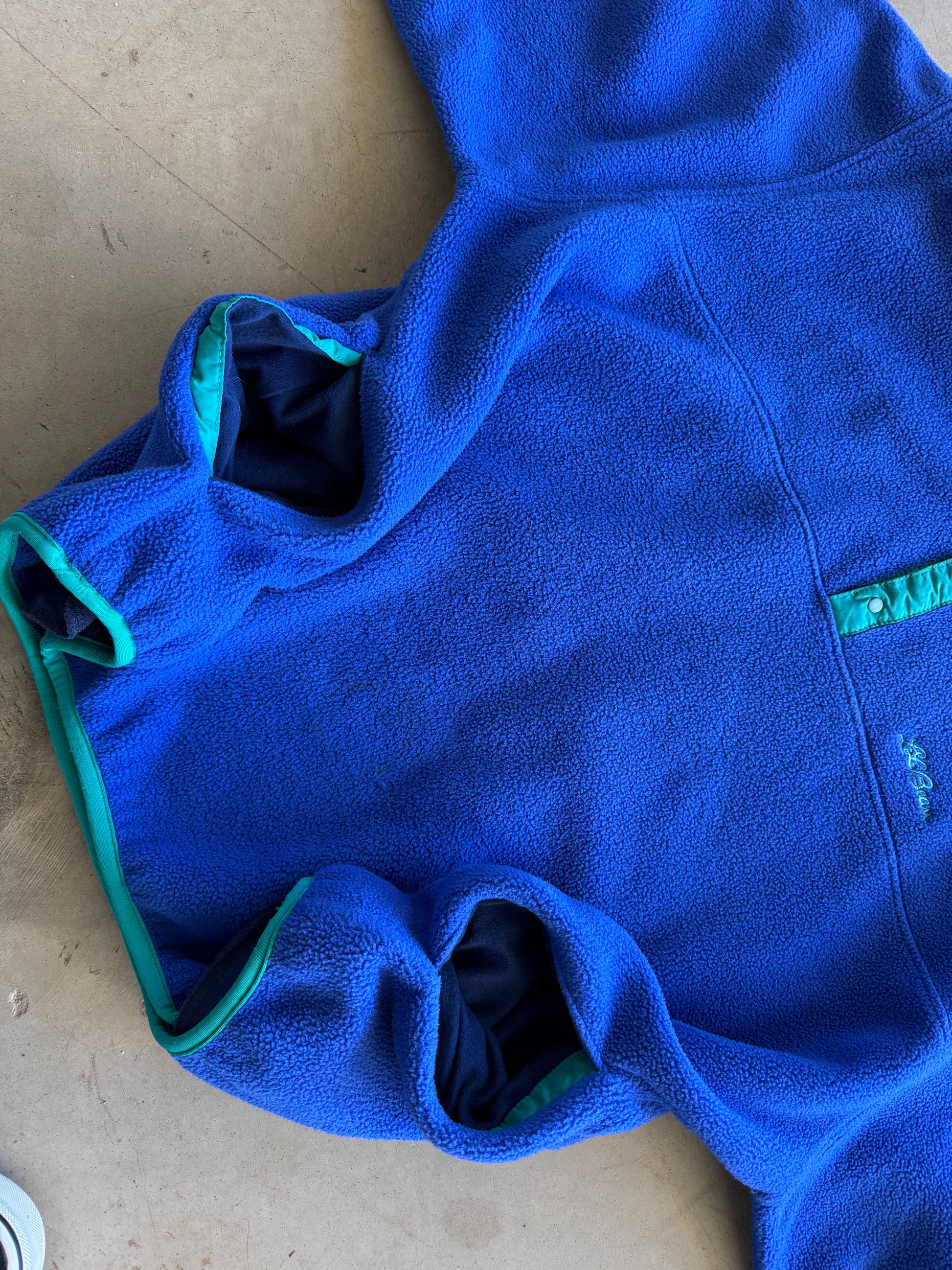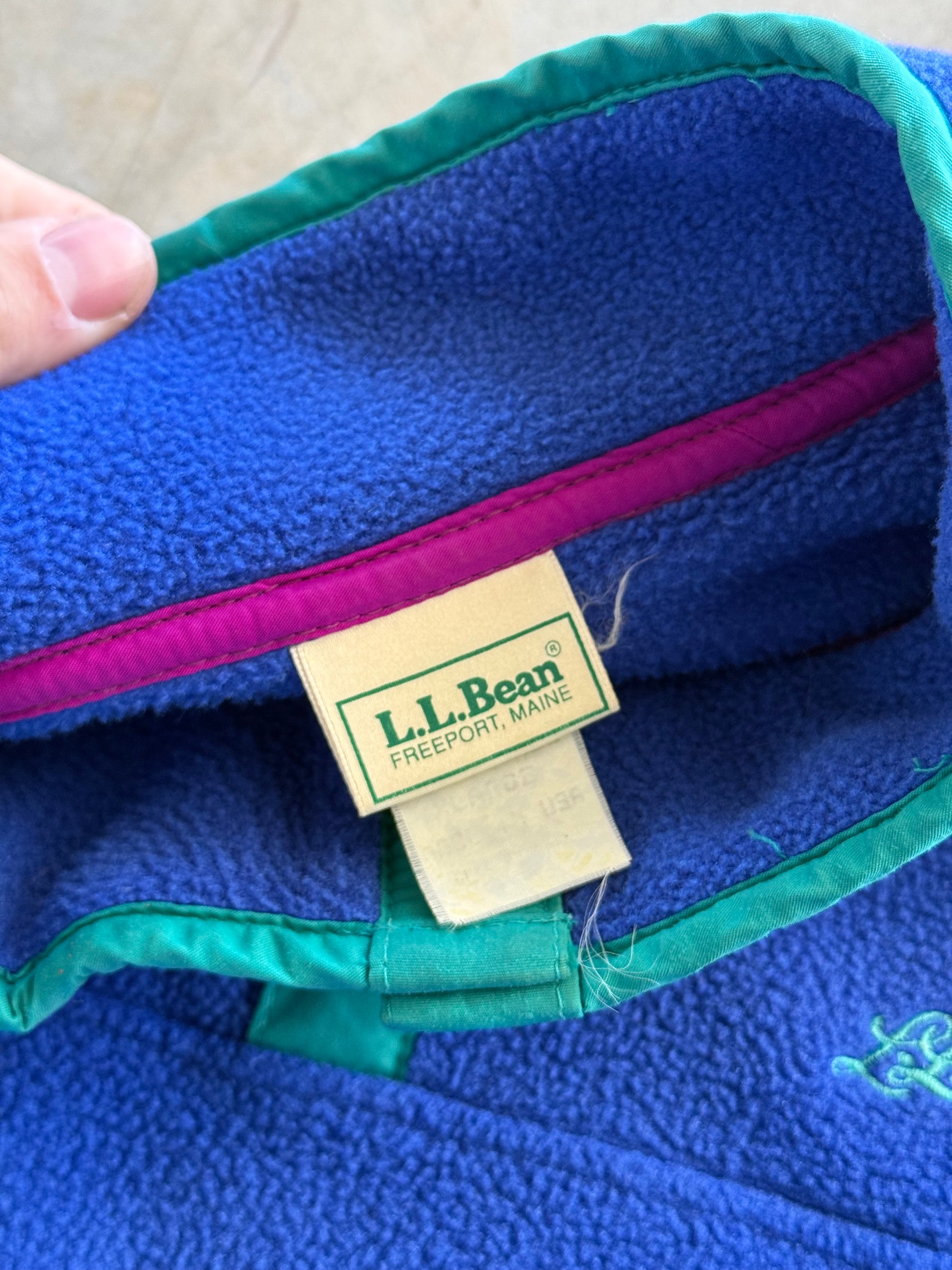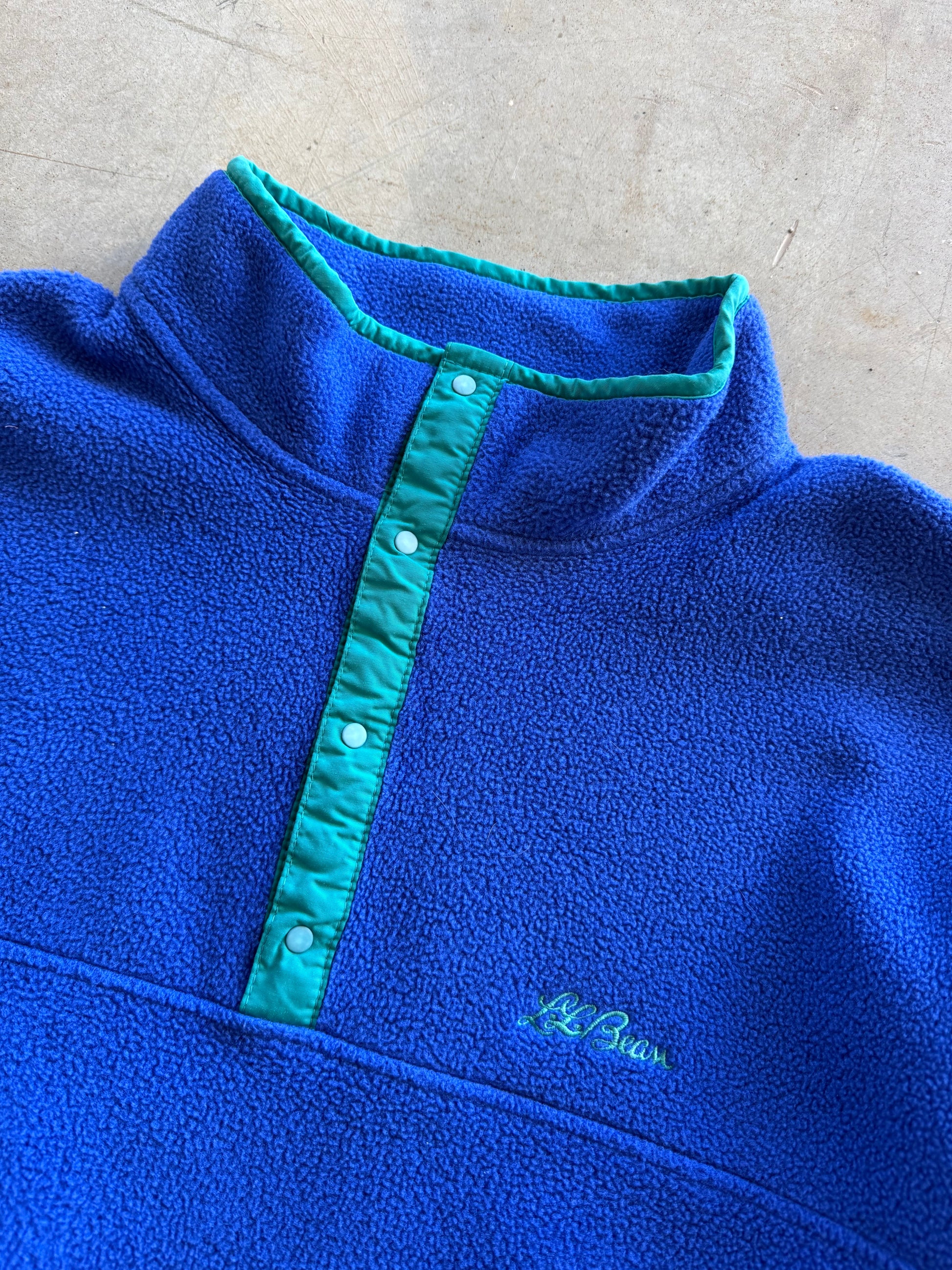 Vintage 1990s L.L. Bean Blue & Green Fuzzy Button Outdoors Fleece ( XL )