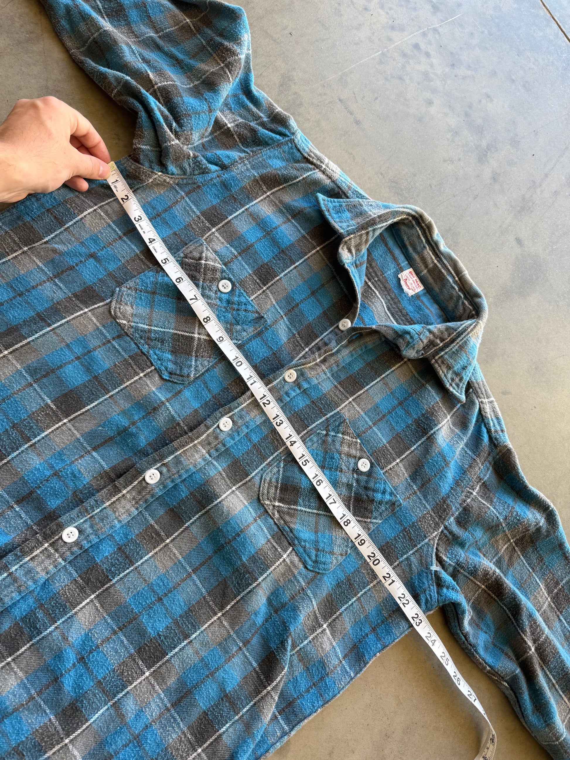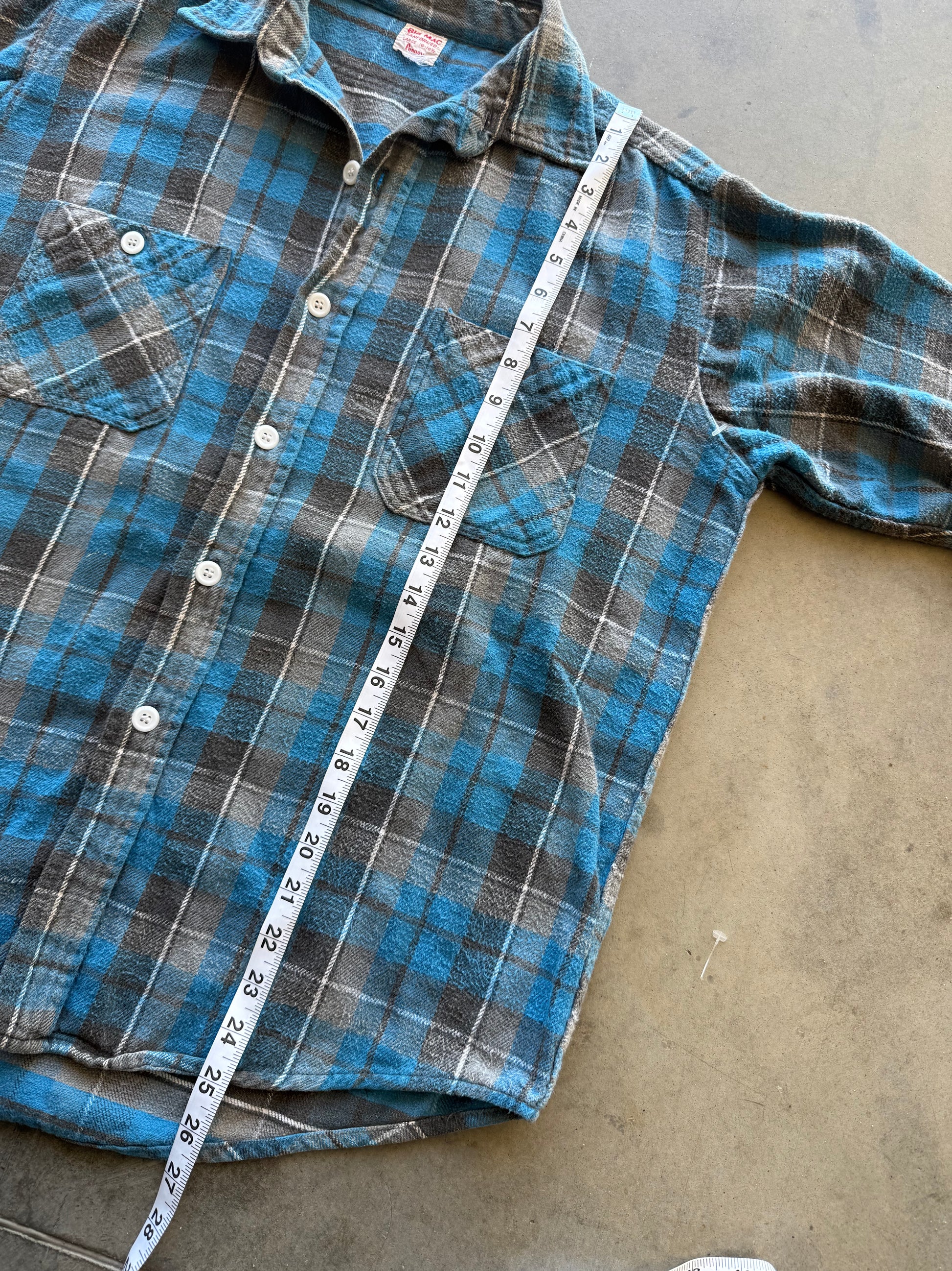 Vintage 50s Big Mac Blue Plaid Flannel Tee ( Large )