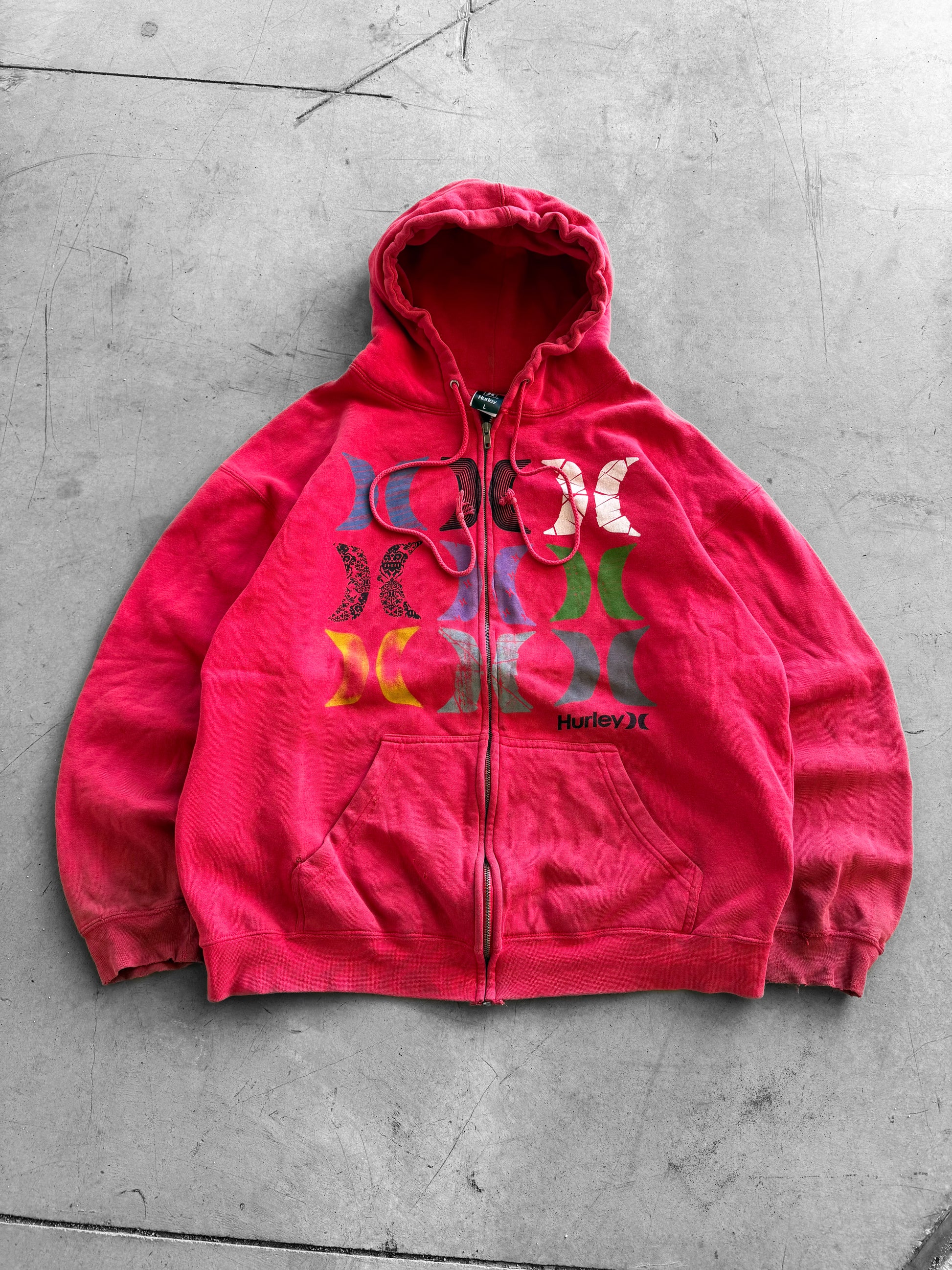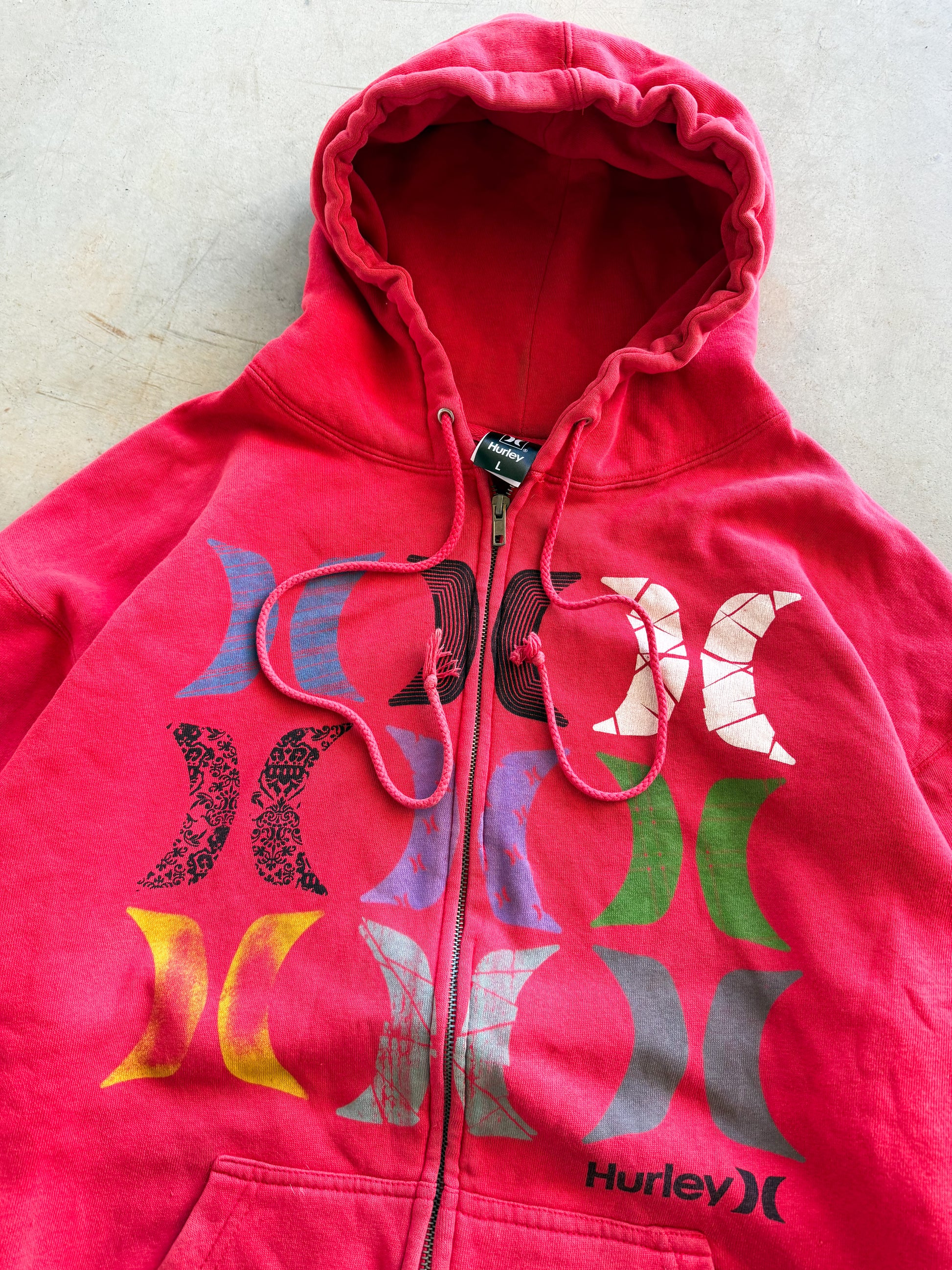 Vintage Y2K Hurley Skate Red Zip Up Hoodie ( Large )